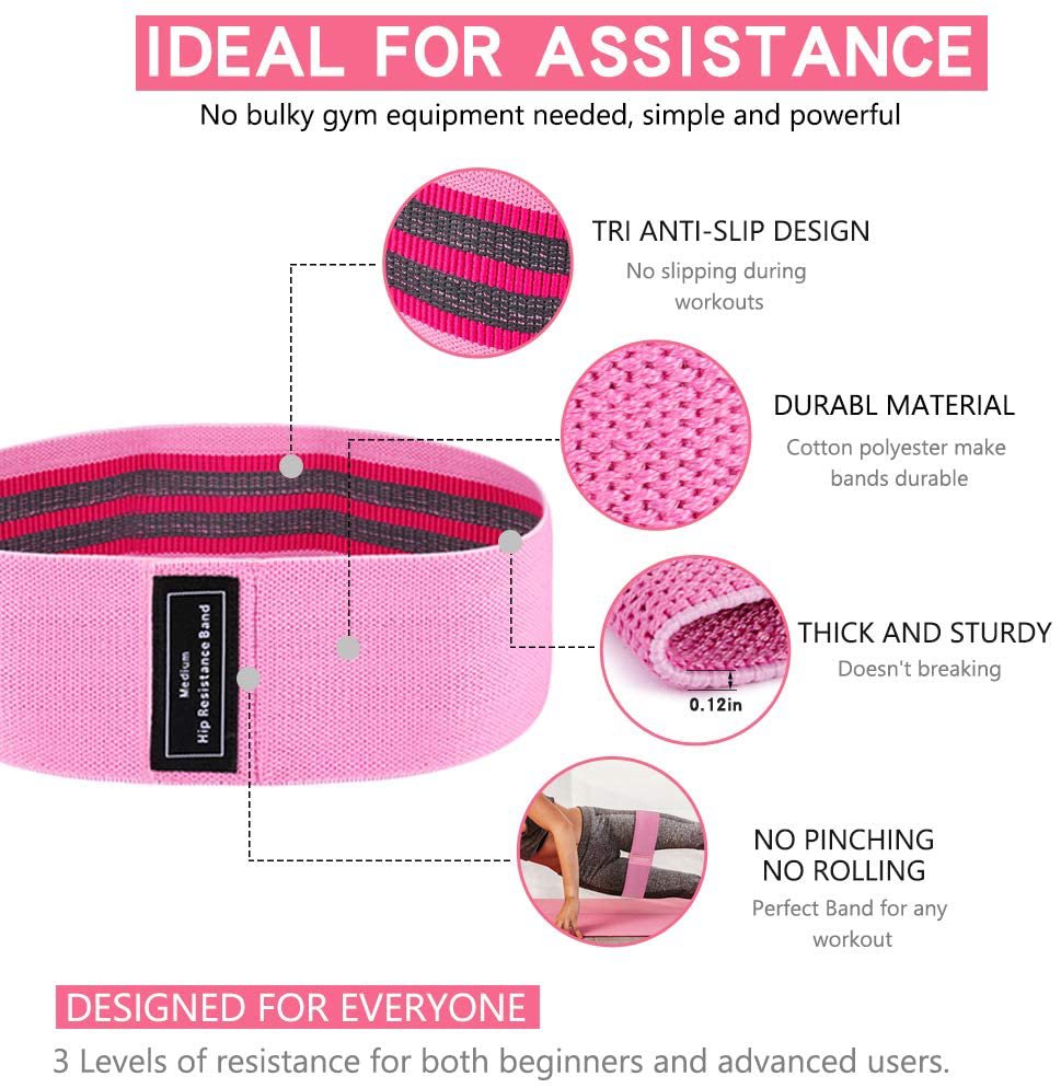 1.Premium Elastic & Breathable Fabric-Our exercise bands are made from soft, skin-friendly fabric that won’t slip up or down roll during exercise and soft knitting surfaces don’t rub against your skin. They are breathable, anti-slip and anti-roll up.