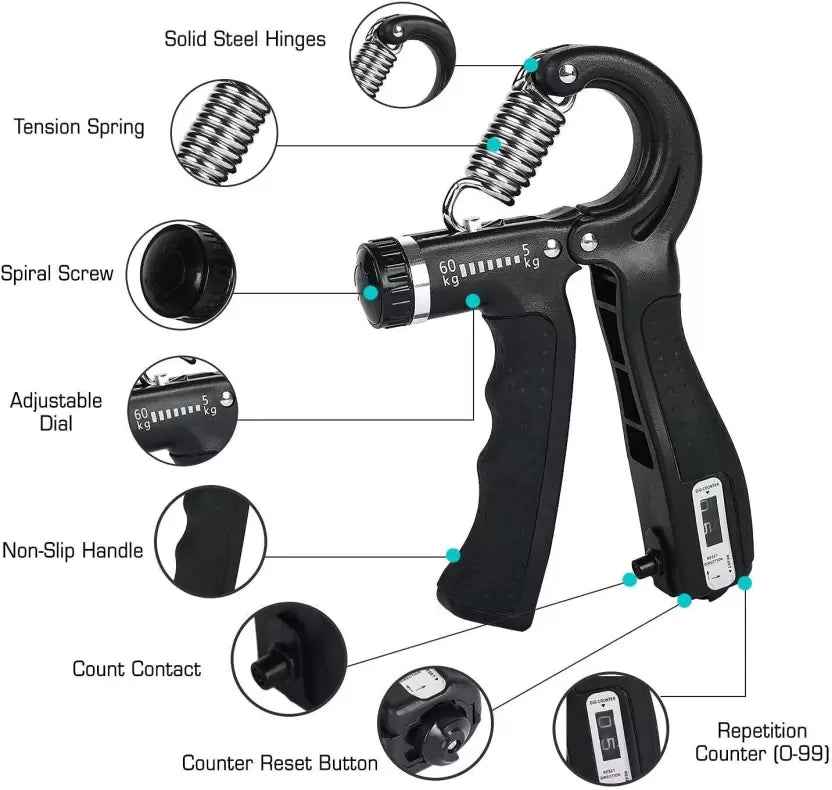 2. ADJUSTABLE RESISTANCE – Adjustable resistance, you can adjust it from (10 kg) to (60 kg) according to your need. Can be done at home or in office with just 5-10 minutes per day. Perfect for athletes, musicians, rock climbers, tennis players, etc.
