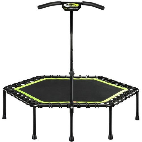 The trampoline is usually preferred for the exercise of the whole body or aerobics. There are three adjustable T-shaped handles, which can also be removed if needed. The height of these handles ranges from 42.5″ to 50.4″.